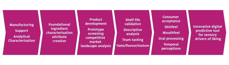 We use trained tasters, conusmers, advanced statistics, oral processing and chemosensory to understand how sensory characterisation shapes customer selction of Ingredion as "The preferred solution supplier."